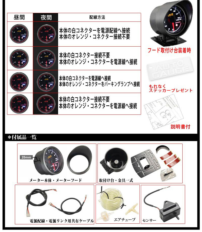 มาพร้อมอุปกรณ์ชุดสาย ชุดถ้วยตั้งเกจ์(จะติดกระจกวางบนคอนโซลก็ได้) และคู่มือการติดตั้งครบชุด ดูรายละเอียดเพิ่มเติมได้จากในรูป